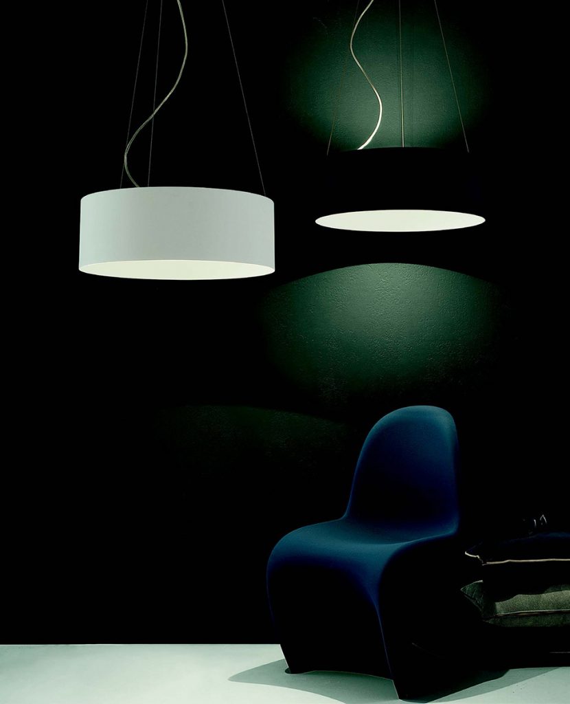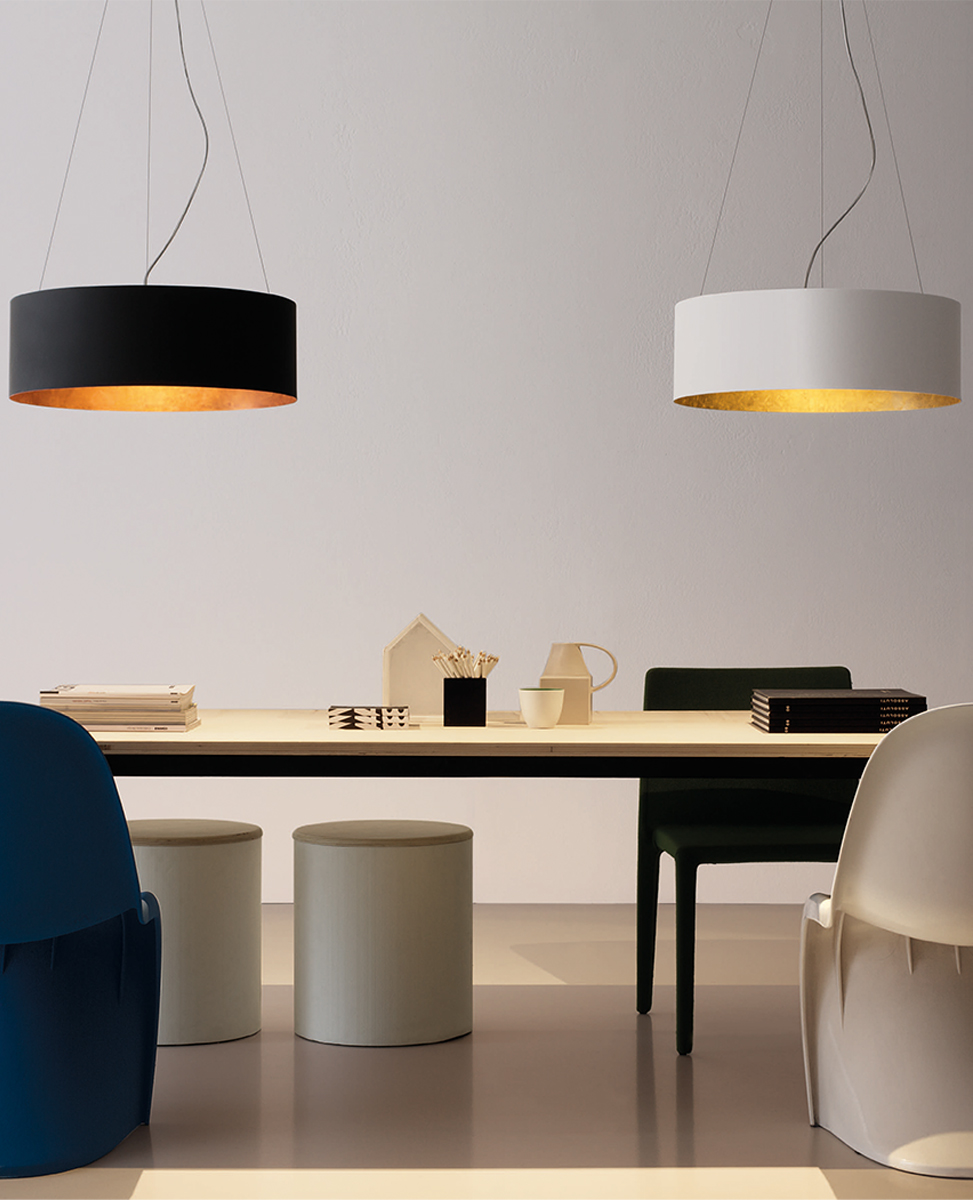 Turned aluminium suspension lamp available with direct/indirect or only direct light beam, LED 220V with no need of driver.